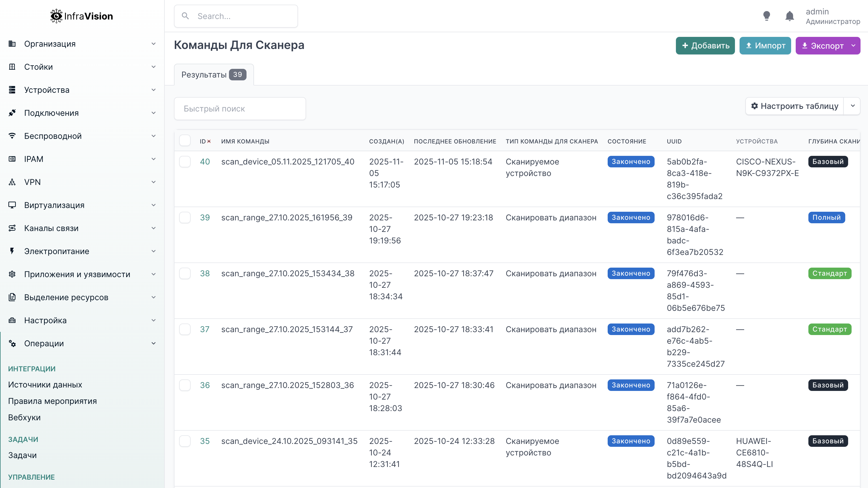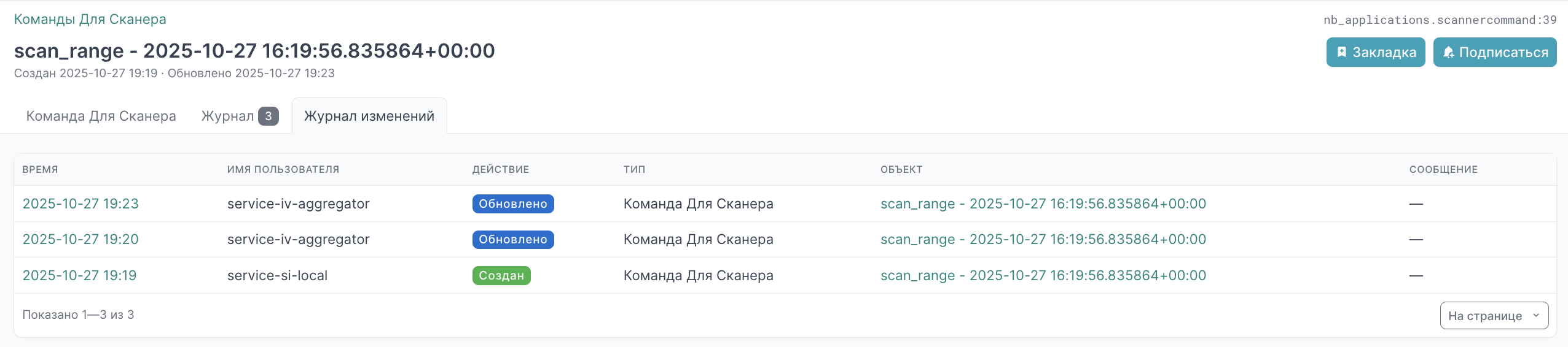 Для управления заданиями сканирования перейдите в раздел «Операции» -> «Управление» -> «Команды Для Сканера».