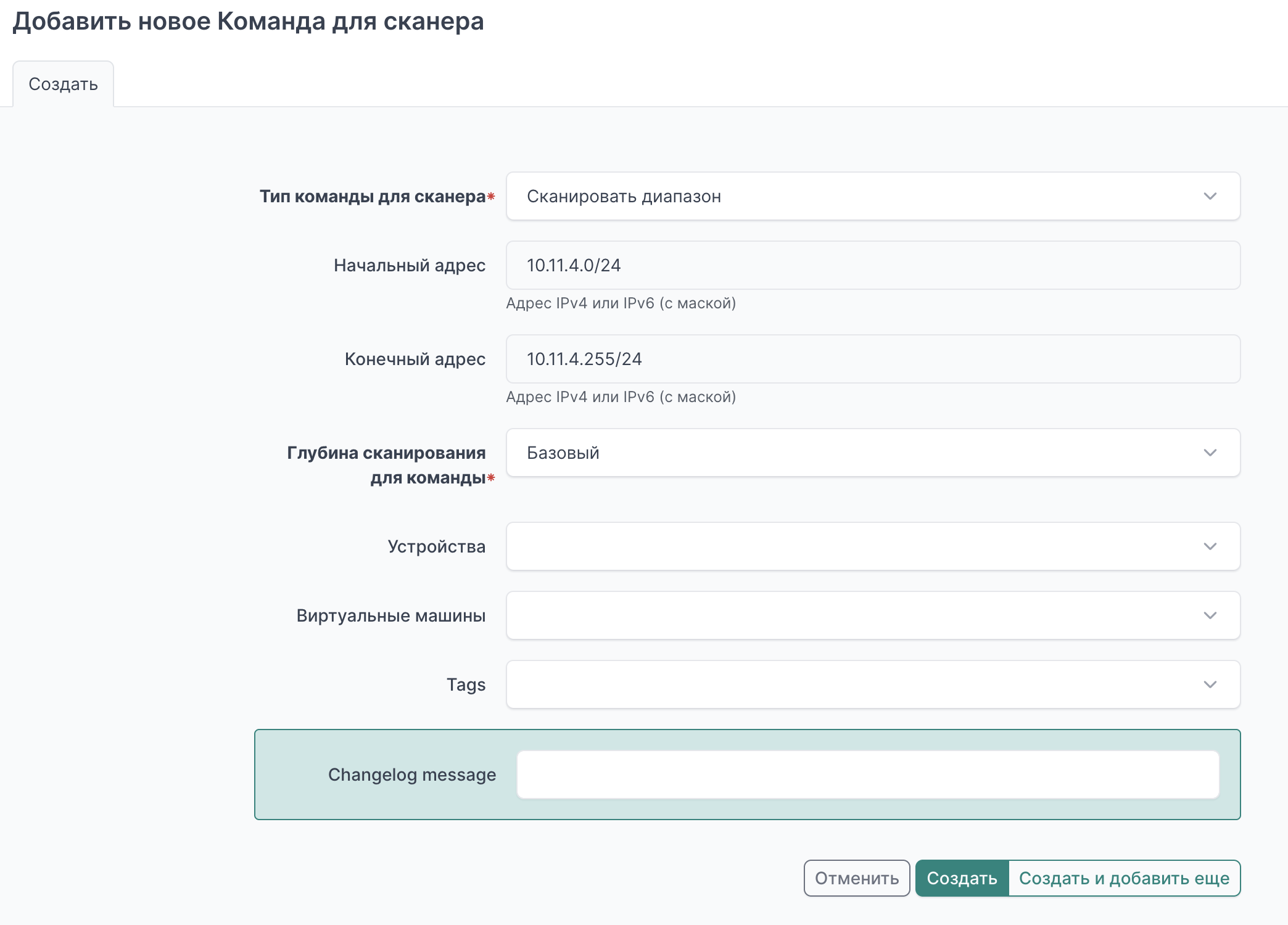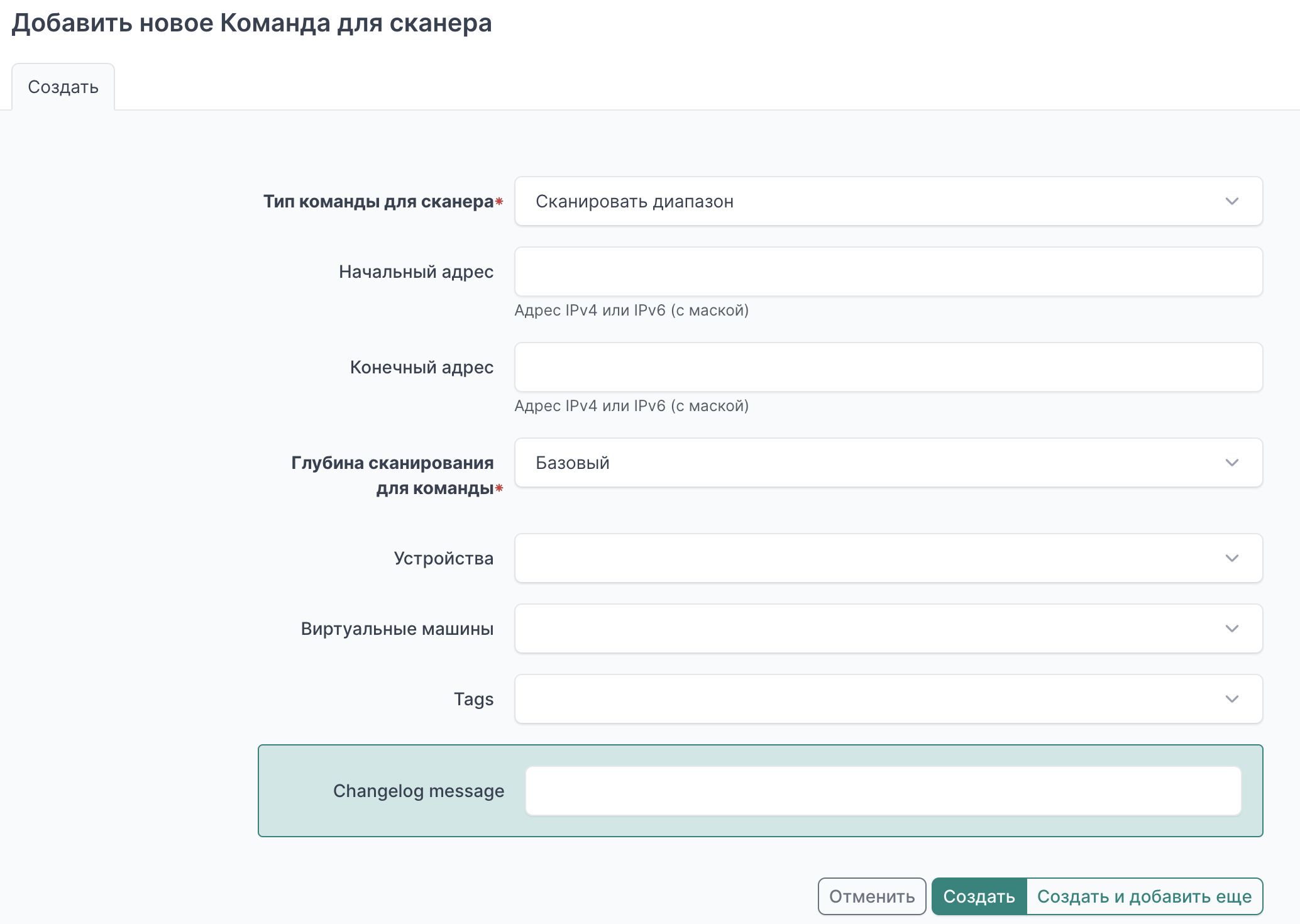 Рассмотрим заполнение формы задания в зависимости от выбранного типа сканирования: